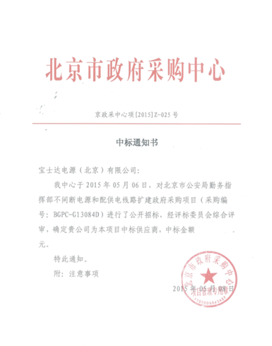 近日,寶士達(dá)UPS電源以創(chuàng)新的、完善的UPS冗余并機供電解決方案和高效的技術(shù)服務(wù),成功中標(biāo)北京市公安局勤務(wù)指揮部不間斷電源和配供電線路擴建政府采購項目,為北京市公安局勤務(wù)指揮部數(shù)據(jù)中心供電系統(tǒng)提供全面的、安全的、可靠的不間斷電力保障。