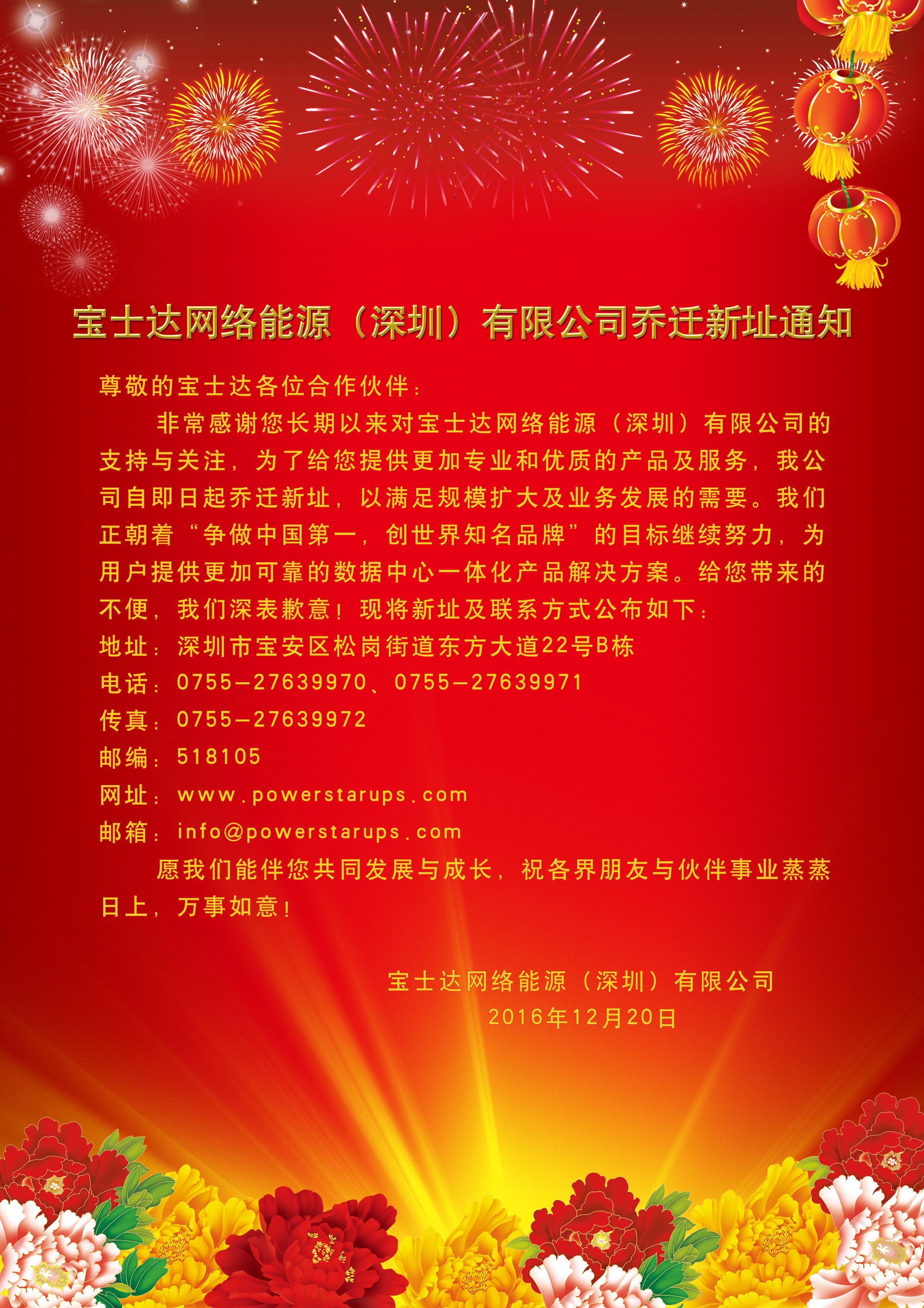 寶士達(dá)網(wǎng)絡(luò)能源(深圳)有限公司喬遷新址通知