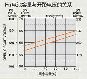 當溫度高于或低于25℃時,浮充電壓應(yīng)校正,校正系數(shù)-3mv//單體。F12為電池浮充電壓與溫度的關(guān)系。