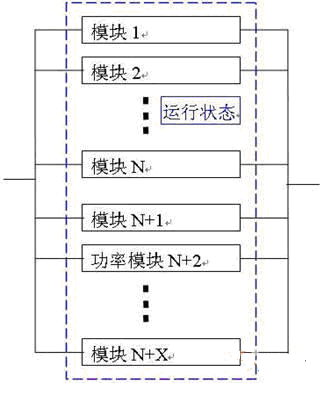 (N+X)個模塊并聯(lián)形成一個表決系統(tǒng),在該系統(tǒng)中(N+X)個可靠度相同的單元組成并聯(lián)結(jié)構(gòu),其中有N個單元正常工作,系統(tǒng)就可以正常工作。