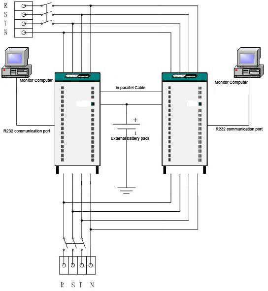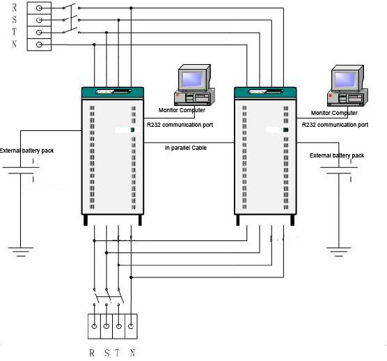 Description: The parallel operation of two or more UPS which share the load average with each connected to a separate battery pack.